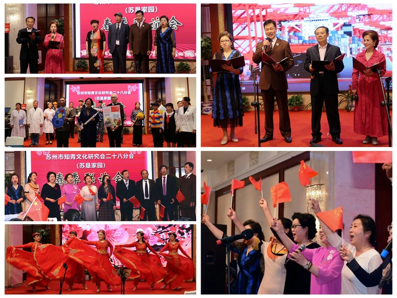 聯誼會在與會人員大合唱《祖國頌》響亮的歌聲中拉開帷幕。首先由金閶醫院董事長劉海濤、今世緣無錫銷售有限公司負責人等特邀嘉賓向聯誼會致辭,接著是分會會長吳明珠進行了主旨發言,蘇州市知青文化研究會會長、蘇墾米業蘇州辦事處代表,南京、常州、南通知青代表以及淮海農場家禽養殖戶等發言向聯誼會召開表示熱烈祝賀。聯誼會上演了由知青自編自演的舞蹈、獨唱、合唱、快板、朗誦、太極拳等20個文藝節目。青春已逝,芳華不再,然而這些與共和國同齡的老知青們風采依舊,活力不減,他們以飽滿的熱情、嫻熟的藝術手段為聯誼會奉獻了一臺精美的文化大餐。