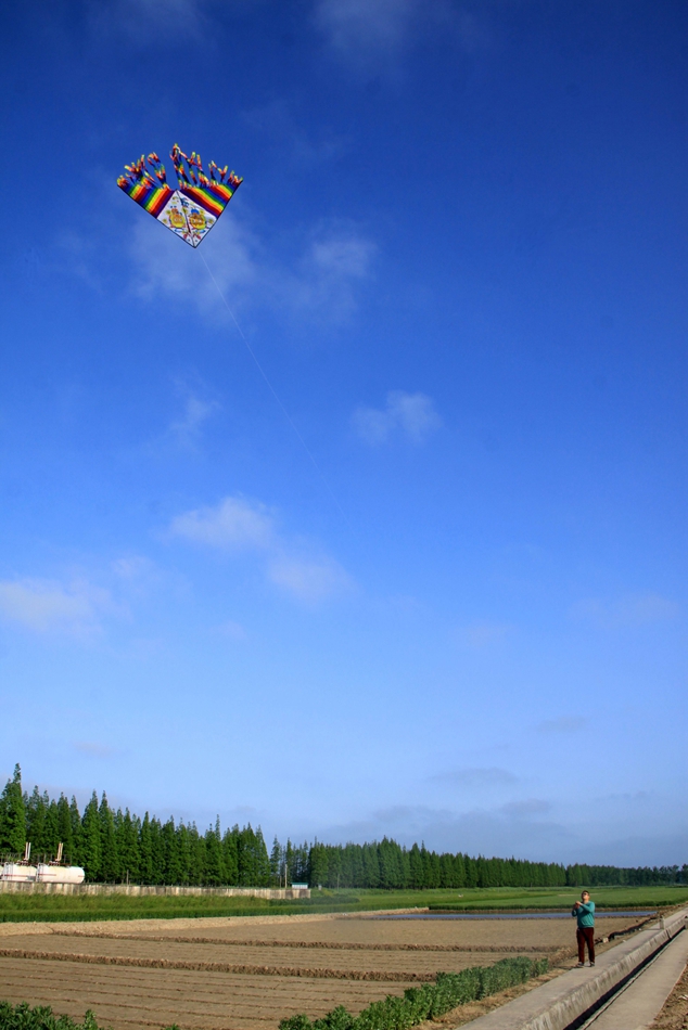 放風箏是一項對身心健康十分有益的戶外活動,是人們十分喜愛的活動。新洋天地廣闊,是放飛風箏最理想的,微風習習,人們走向田野放飛風箏,但見各種色彩各種形狀的風箏在空中飄飄蕩蕩,是新洋一道美麗的風景。孩提時代,場部銀行有一位馮姓工作人員年年在春暖花開的季節放飛風箏,那風箏放得又高又遠,抬頭望去,那風箏猶如一只小小的胡蝶在高空中飛舞,煞是好看。我和小伙伴非常羨慕,也學著用蘆柴和報紙扎起了風箏,由于不懂風箏的平衡原理,一開始扎的風箏還沒飛多高,就一頭栽了下來。我和小伙伴不斷摸索,風箏總算飛翔起來,我們拉著風箏線在田野里奔跑著,歡呼著,十分地興奮,但我們的風箏總是沒有馮姓工作人員放的風箏飛得高、飛得遠。
