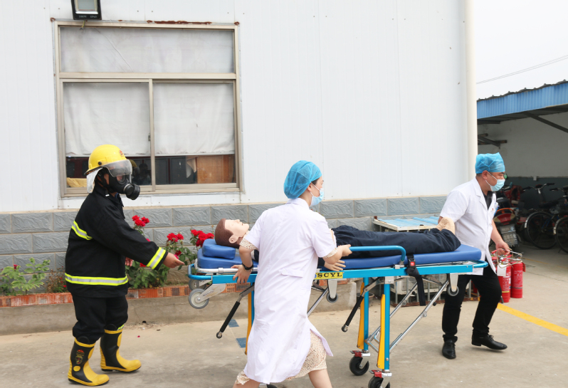 演練內容主要包括發生火災,準確報火警;啟動應急預案,搶險滅火組撲滅初期火災;安全保衛組引導人員疏散,現場警戒;醫療救護組進行傷員急救等。演練中,警戒組、搶險滅火組、善后處理組、醫療救護組、通訊聯絡組各司其職,緊張、有序、高效地完成救援演練,取得了圓滿成功。