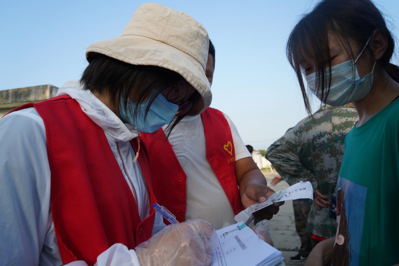 孫川頁是盱眙桂伍鎮(zhèn)山洪村主任、黨支部書記,疫情發(fā)生后,由于是嫁到農(nóng)場,不能到單位上班滯留在了三河,在向農(nóng)場捐贈了酒精、免洗消毒凝膠和100包口罩后,當(dāng)她得知農(nóng)場要進(jìn)行全員核酸檢測的消息,便主動請求到檢測點(diǎn)做志愿服務(wù),在保鮮庫核酸檢測點(diǎn)我們看到了孫川頁,她身穿紅色志愿者馬夾,與志愿者們一起登記填寫信息,維持現(xiàn)場秩序等,作為三河人的家屬,她把三河當(dāng)家,全身心的投入到核酸檢測的各項(xiàng)服務(wù)工作,一直到核酸檢測工作全部完成。
