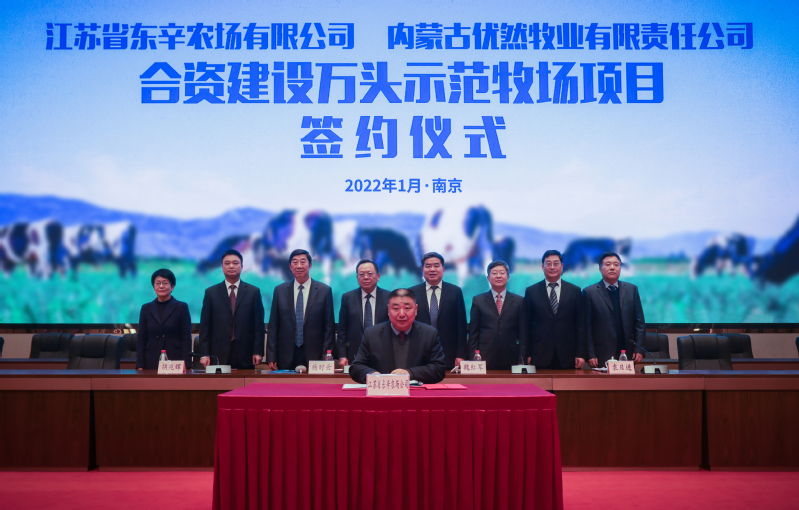 1月12日,東辛農場公司與內蒙古伊利集團優(yōu)然牧業(yè)公司合資建設萬頭示范牧場項目正式簽約。本次簽約儀式采用視頻會議形式進行,省委農辦主任、省農業(yè)農村廳廳長楊時云,總畜牧獸醫(yī)師袁日進,集團公司黨委書記、董事長魏紅軍,總經(jīng)理胡兆輝,副總經(jīng)理姜建友、王立新,總法律顧問吳以國、總經(jīng)理助理錢伯彬、董事會秘書孟亞平在南京出席儀式,伊利集團董事長潘剛,執(zhí)行總裁張劍秋,副總裁劉剛、晁德文在呼和浩特出席儀式。袁日進、胡兆輝、張劍秋分別代表三方致辭,姜建友主持簽約儀式。