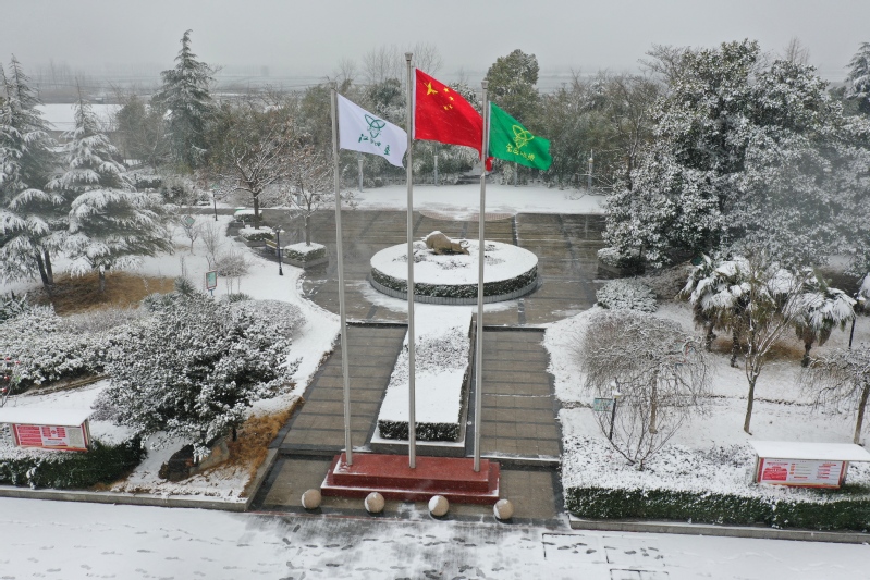 高大的銀杏樹(shù)、柿子樹(shù),落光了葉子的枝杈上,一條條毛茸茸、亮晶晶的銀條兒好像蟄伏著的蠶蟲(chóng);修長(zhǎng)的香樟、低矮的柏樹(shù),四季常青枝葉上,一朵朵蓬松松、沉甸甸的雪球,仿佛舉起的棉花糖。“呼……”一輛晨起的公交車閃著光駛過(guò),一面面紅旗也迎風(fēng)雀躍起來(lái),似乎在說(shuō)“又是一個(gè)豐收年”。