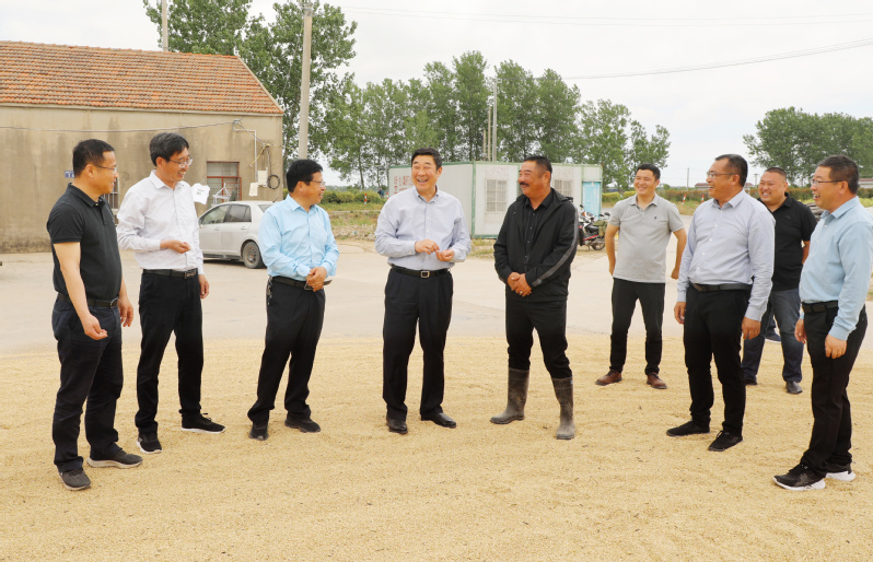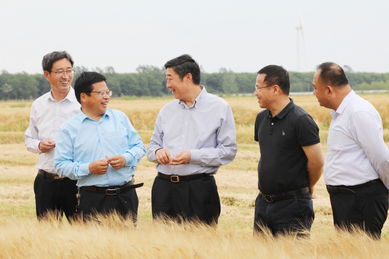 胡兆輝指出,三夏工作是墾區(qū)當(dāng)前的重點(diǎn)工作,從臨海井然有序的三夏工作場(chǎng)面可以看出,臨海對(duì)三夏工作高度重視,干部職工戰(zhàn)三夏、促生產(chǎn)的干勁足、士氣高。當(dāng)前,要利用晴好天氣全力做好保種保糧工作,協(xié)調(diào)好啤麥的收儲(chǔ)工作,要確保夏糧生產(chǎn)和保種工作全勝,更要抓好育秧、栽插管理,為秋糧豐收打好堅(jiān)實(shí)基礎(chǔ)。胡兆輝強(qiáng)調(diào),要協(xié)同各方面力量高效推進(jìn)三夏生產(chǎn),認(rèn)真落實(shí)好各層各級(jí)安全責(zé)任,抓好安全生產(chǎn)。要加快推進(jìn)江蘇農(nóng)墾智慧農(nóng)業(yè)科技園項(xiàng)目建設(shè),讓園區(qū)盡快、盡早建成并投入使用,力爭(zhēng)把智慧農(nóng)業(yè)科技園建成江蘇農(nóng)墾研發(fā)高科技智慧農(nóng)業(yè)的孵化器,成為江蘇農(nóng)墾引領(lǐng)農(nóng)業(yè)現(xiàn)代化發(fā)展的展示平臺(tái)。胡兆輝要求,臨海要加強(qiáng)與地方政府部門(mén)溝通聯(lián)系,加強(qiáng)與相關(guān)單位的交流合作,積極做好外拓基地的開(kāi)發(fā)、建設(shè)和發(fā)展工作。要有效利用好外拓基地現(xiàn)有資源,通過(guò)輸入江蘇農(nóng)墾先進(jìn)的農(nóng)業(yè)生產(chǎn)技術(shù)和管理模式,大力提高外拓基地農(nóng)業(yè)生產(chǎn)水平,凸顯江蘇農(nóng)墾農(nóng)業(yè)生產(chǎn)的質(zhì)量?jī)?yōu)勢(shì)、效益優(yōu)勢(shì)、發(fā)展優(yōu)勢(shì),發(fā)揮好示范引領(lǐng)區(qū)域現(xiàn)代農(nóng)業(yè)發(fā)展的生力軍作用。