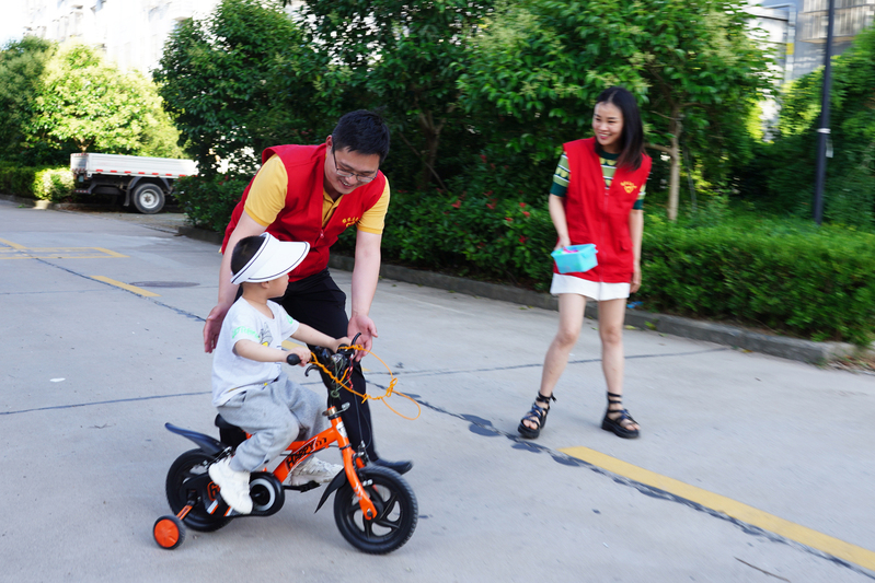 6月10日下午,弶港農場團委“愛心爸爸”“愛心媽媽”帶著兒童繪本和玩具,走進困境兒童小浩浩的家里?!皧W迪曼與怪獸作戰斗…… ”夢想小屋的書桌前,浩浩依偎在“愛心媽媽”孫菁懷里,聽著有聲有色的奧特曼的故事。“別怕,勇敢地往前騎,我在身后保護你”“我們一起來比賽,看誰快”小區的空地上,在“愛心爸爸”陳海榮鼓勵下,浩浩騎著兒童單車,開朗的笑聲在小區里飄蕩。一起玩拼圖、畫畫、做游戲,幾個小時下來,不愛說話的小浩浩從最初的羞澀生疏,到漸漸展露笑容,短暫的相聚中,與“愛心爸媽”建立了深厚的信任和感情。