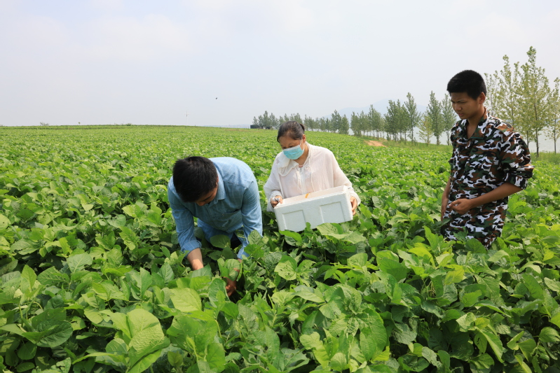 由于當地村民初次接觸豆丹養殖,工作不熟練,豆丹蟲卵投放進程較慢,一直到下午5點多,3畝多黃豆地才全部投放好豆丹蟲卵,為了防止小鳥偷吃豆丹,大家一同把防鳥網蓋好,才高高興興地踏上返場車輛。