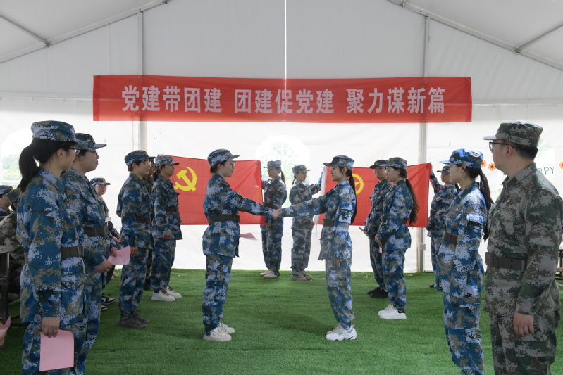 5月13日,淮海農(nóng)場有限公司黨委和團委開展“黨建引領(lǐng)、團建賦能、凝聚青春奮斗力量”主題活動,近50名40周歲以下青年員工來到連云港云水灣拓展基地,開展戶外拓展活動。圖為青年員工在開展“黨建帶團建 團建促黨建 聚力謀新篇”黨團員結(jié)對儀式。
