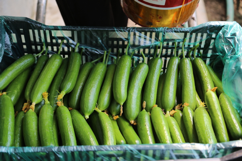 生產(chǎn)中,技術(shù)人員根據(jù)棚溫、濕度等變化規(guī)律合理進(jìn)行調(diào)節(jié),為黃瓜生長提供適宜的環(huán)境,提高黃瓜的品質(zhì),經(jīng)過科學(xué)管理,目前已經(jīng)成功上市銷售。由于目前市場上水果黃瓜供應(yīng)較少,加之崗埠水果黃瓜品質(zhì)優(yōu)良,收到了保真超市和市區(qū)一些水果連鎖店的熱捧,訂單紛至沓來。“現(xiàn)在水果黃瓜剛上市,產(chǎn)量每天僅4、5百斤,根本不夠搶的,今天都摘了第二遍了?!贝奘科揭贿吤β抵?,一邊說。