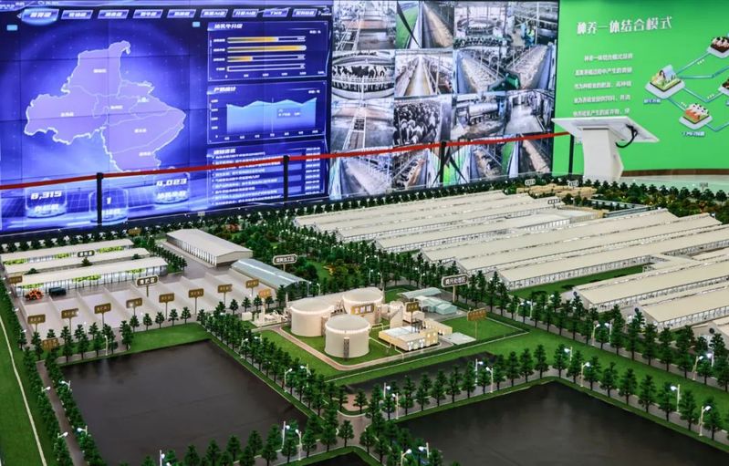 生態(tài)化發(fā)展加速轉(zhuǎn)型。牧場(chǎng)智慧生態(tài)系統(tǒng)的污水循環(huán)管理設(shè)備包含牧場(chǎng)污水管路3D圖與污水監(jiān)測(cè)點(diǎn)位信息,實(shí)時(shí)監(jiān)測(cè)牧場(chǎng)污水指標(biāo),并將數(shù)據(jù)同步上傳至環(huán)保部門(mén),確保牧場(chǎng)水質(zhì)監(jiān)管到位。沼氣發(fā)電系統(tǒng)將標(biāo)準(zhǔn)化工藝處理糞污產(chǎn)生的沼氣用于發(fā)電,沼液利用后的沼渣作為牛床墊料的生產(chǎn)原料,不僅成本低,還有效降低了養(yǎng)殖風(fēng)險(xiǎn)。同時(shí)在場(chǎng)區(qū)配備廢氣檢測(cè)設(shè)備監(jiān)測(cè)養(yǎng)殖氣體環(huán)境,配備消防監(jiān)控設(shè)備監(jiān)測(cè)飼草區(qū)與沼氣發(fā)電區(qū)域煙火狀況。智能生態(tài)系統(tǒng)采取糞污固體發(fā)酵、沼氣烘干回床、沼液還田方式,實(shí)現(xiàn)“變廢為寶”。對(duì)牧場(chǎng)糞污發(fā)酵后的液位進(jìn)行采集,經(jīng)過(guò)無(wú)害化處理后的沼液通過(guò)預(yù)設(shè)專(zhuān)用管道,在卷盤(pán)式噴灌機(jī)的運(yùn)轉(zhuǎn)下自動(dòng)噴灑在專(zhuān)屬消納用地的田間作物上,形成種養(yǎng)一體循環(huán),有效提高了糞污綜合利用水平。