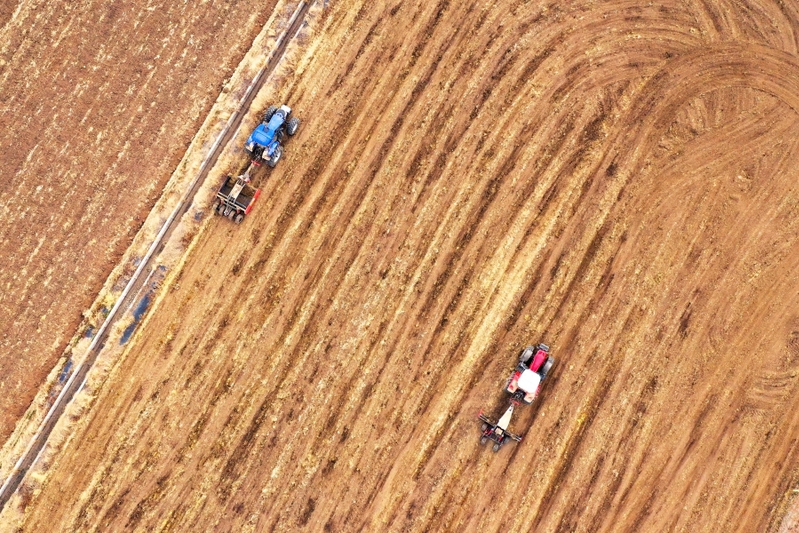 2月6日,江蘇農(nóng)墾新洋農(nóng)場(chǎng)組織北斗衛(wèi)星平地機(jī)對(duì)高標(biāo)準(zhǔn)農(nóng)田進(jìn)行厘米級(jí)精度的激光土地平整作業(yè),為“春耕”水稻育秧做好準(zhǔn)備。