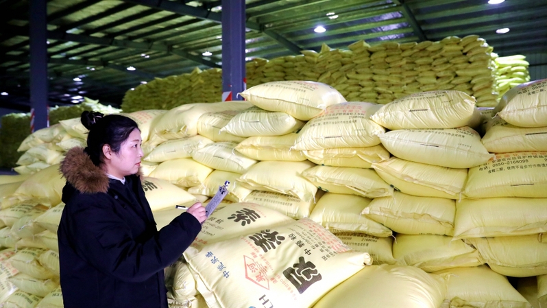 2月6日,蘇墾農(nóng)服東辛分公司倉(cāng)儲(chǔ)中心內(nèi),倉(cāng)庫(kù)保管員正在清點(diǎn)春耕農(nóng)資,為春耕做好儲(chǔ)備。