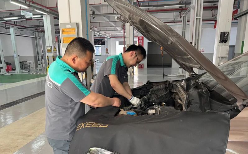 蘇舜舜江公司(上汽榮威、奇瑞星途4S店)技術(shù)經(jīng)理潘學(xué)銀正在指導(dǎo)機(jī)電技師黃楠正在維修一輛因發(fā)動機(jī)故障導(dǎo)致無法正常行駛的車輛,黃楠說:“修車真的是一項(xiàng)需要經(jīng)驗(yàn)和技術(shù)的工作,每一次操作都是一次挑戰(zhàn)。”