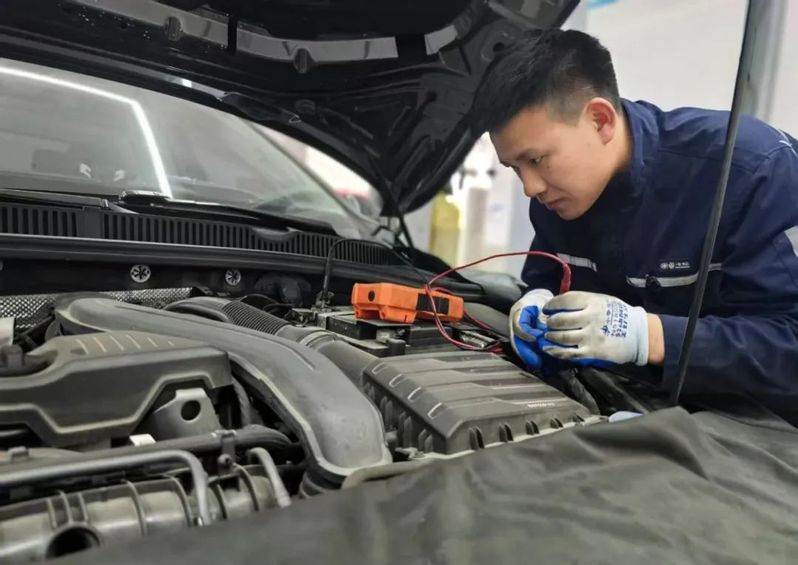 蘇舜恒通公司(一汽大眾4S店)機(jī)電技師張凱正在排查一輛邁騰車的發(fā)動機(jī)故障。他說:“今天修好了一輛故障復(fù)雜的車,感覺自己的耐心和技術(shù)都得到了鍛煉和提升。”