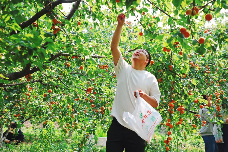 又是一年杏子黃,碩果壓枝正飄香。眼下,江蘇淮安盱眙三河農場的杏林迎來豐收,果香四溢的杏子掛滿枝頭,果農搶抓晴好天氣進行采摘、分揀、裝箱,一派忙碌的豐收景象。 作者:錢厚紅 韓磊