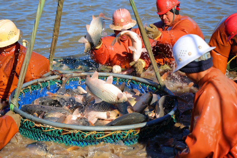 12月25日,江蘇省連云港市海州區(qū)的江蘇農(nóng)墾崗埠農(nóng)場(chǎng),水產(chǎn)工人分工協(xié)作,加緊拉網(wǎng)捕撈鯉魚、花鰱、白鰱等各種鮮魚,準(zhǔn)備供應(yīng)云南昆明、山東濟(jì)寧等多地市場(chǎng)。隨著2026年元旦臨近,水產(chǎn)市場(chǎng)需求量逐漸增大,當(dāng)?shù)胤e極做好鮮魚捕撈銷售工作,切實(shí)滿足節(jié)日市場(chǎng)需求。