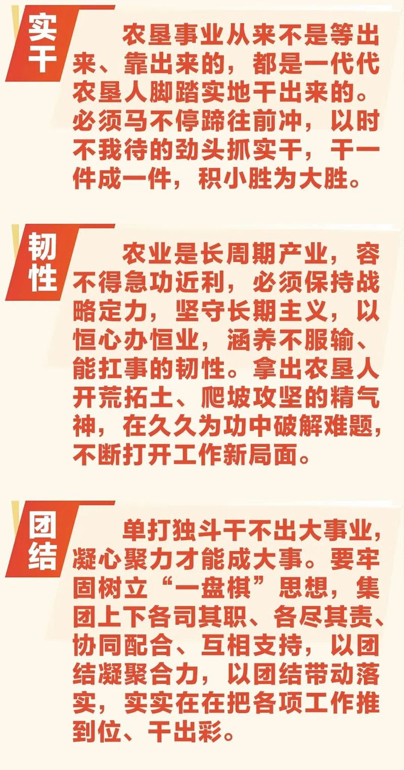 會議全面回顧了集團(tuán)2025年及“十四五”時期改革發(fā)展成果。2025年,集團(tuán)各項經(jīng)營指標(biāo)穩(wěn)中有進(jìn),糧食生產(chǎn)能力得到鞏固提升,產(chǎn)業(yè)發(fā)展后勁不斷增強,創(chuàng)新驅(qū)動發(fā)展支撐有力,全面深化改革有序落實,企業(yè)治理體系更加完善,黨建引領(lǐng)保障持續(xù)強化,集團(tuán)總體發(fā)展態(tài)勢保持穩(wěn)健向好。會議還系統(tǒng)總結(jié)了“十四五”期間所取得的寶貴經(jīng)驗,要始終保持戰(zhàn)略定力、穩(wěn)步提升經(jīng)濟(jì)實力、有效增強示范能力、充分展現(xiàn)產(chǎn)業(yè)張力、持續(xù)激發(fā)內(nèi)生動力、廣泛凝聚干事合力,這為“十四五”發(fā)展圓滿收官畫上了濃墨重彩一筆,更為集團(tuán)“十五五”高質(zhì)量發(fā)展奠定了堅實基礎(chǔ)。