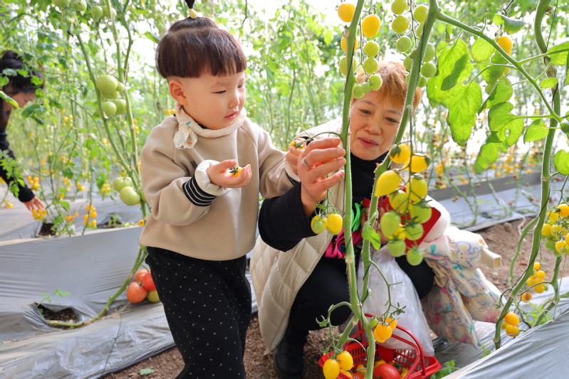 新春佳節(jié)之際,在江蘇省崗埠農(nóng)場的高效農(nóng)業(yè)示范園,游客們利用周末假期等時機(jī),組團(tuán)走進(jìn)溫室采摘園,挑選品嘗不同品種的番茄,與家人朋友享受冬日鄉(xiāng)村采摘的樂趣。