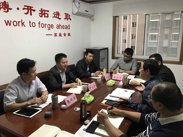 10月10日下午,集團公司黨委委員、副總經理仲小兵一行到蘇墾金屬調研指導工作,蘇墾金屬公司領導班子陪同?! ≈傩”巴N售網點、倉儲公司實地考察了解公司的具體業務情況,并聽取了蘇墾金屬前三季度經營