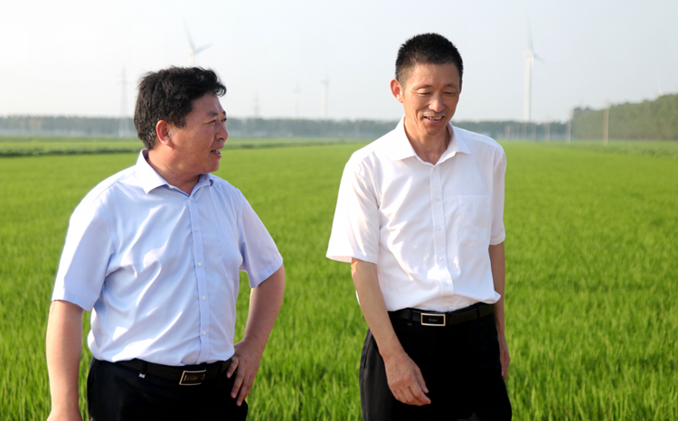 8月5日,集團公司黨委委員、蘇墾農發股份公司總裁蘇志富一行到蘇墾農發股份公司黃海分公司檢查指導工作。黃海分公司總經理賀在銳、副總經理沈進松陪同介紹情況。  蘇志富冒著酷暑深入到黃海分公司水稻生產一