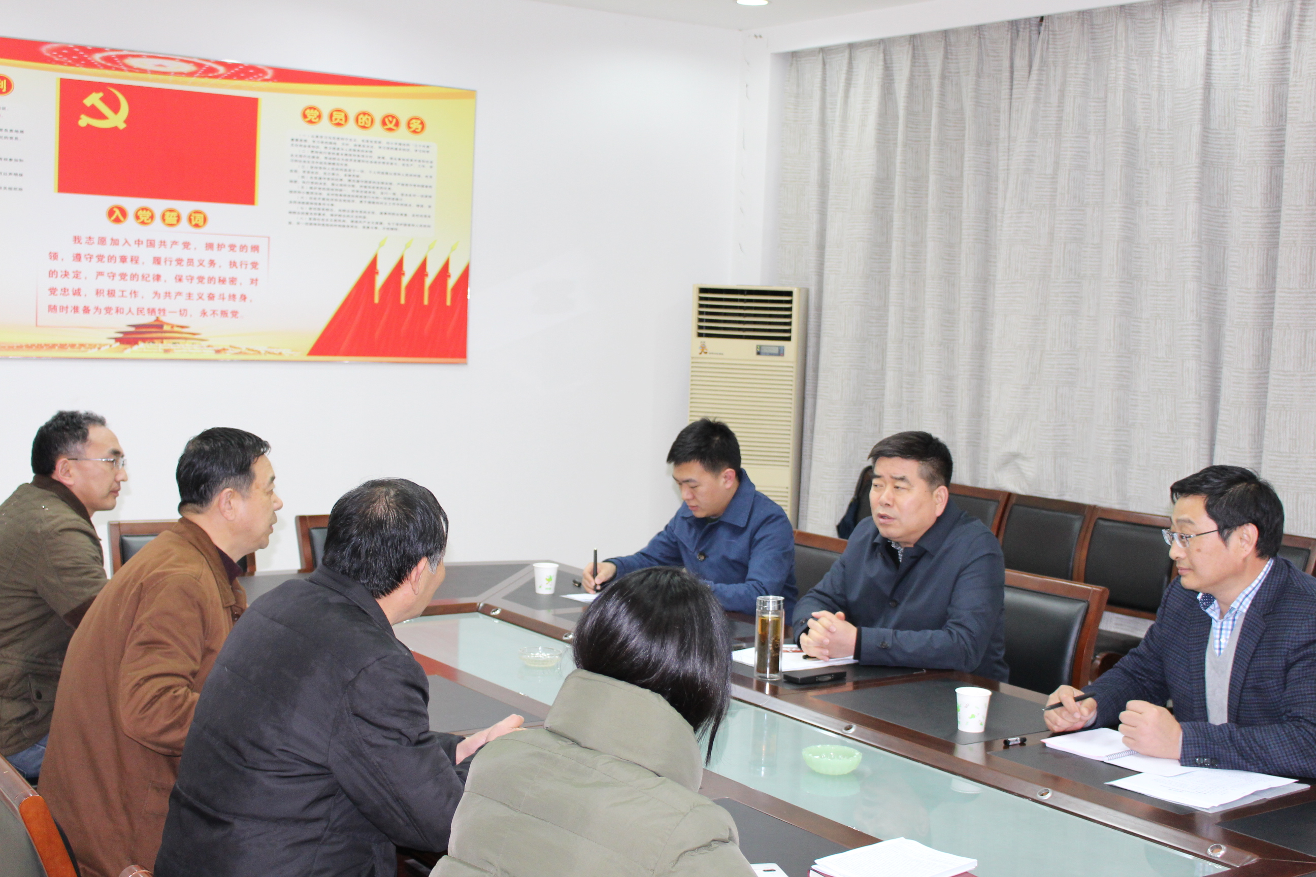 3月20日,集團公司紀委書記到鎮江儲運公司調研指導工作。  章朝陽現場考察了金橋裝飾材料市場、墻紙布藝大樓,通過實地考察,詳細了解市場內商鋪出租情況和商戶經營情況。  儲運公司黨委書記、總經理陳海