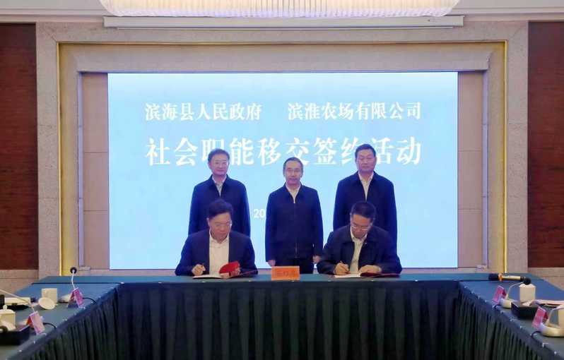 10月24日上午,濱淮農(nóng)場社會職能移交簽約活動在濱海舉行。集團黨委書記、董事長吳本輝,濱海縣委書記吳啟標(biāo),集團黨委委員、副總經(jīng)理劉衛(wèi)華,總經(jīng)理助理姚海洪,濱海縣副縣長李品出席簽約活動。濱海縣政協(xié)主席王海榮主持活動。吳本輝表示,推進企業(yè)辦社會職能改革,是新一輪國企改革的重要接續(xù)工作。濱淮實現(xiàn)農(nóng)場辦社會職能移交屬地管理,是雙方互信互利互贏的重要成果,也標(biāo)志著墾地融合發(fā)展邁出堅實步伐。濱淮農(nóng)場要切實強化責(zé)任意識,加強與濱海縣委、縣政府的溝通匯報,有力有序推進各項社會職能的移交工作。吳本輝指出,近年來,濱海縣錨定經(jīng)濟指標(biāo)“總量靠前、增幅領(lǐng)先”、總體位次“沖刺全市第一方陣”的目標(biāo),以滿格狀態(tài)主動作為、勇挑大梁,持續(xù)放大區(qū)位、產(chǎn)業(yè)、資源、生態(tài)等優(yōu)勢,經(jīng)濟社會發(fā)展呈現(xiàn)出高歌猛進、勢頭十足的良好態(tài)勢。當(dāng)前,江蘇農(nóng)墾正在深化落實“三大建設(shè)”,全力支持所屬農(nóng)場融入地方發(fā)展,培育壯大特色產(chǎn)業(yè)。希望以此次簽約為契機,進一步發(fā)揮墾地產(chǎn)業(yè)鏈協(xié)同優(yōu)勢,推動資源高效整合、深度融合,共同培育特色鮮明的農(nóng)業(yè)產(chǎn)業(yè)集群,打造墾地融合的“濱海樣板”,為推動沿海地區(qū)高質(zhì)量發(fā)展、助力江蘇農(nóng)業(yè)現(xiàn)代化走在前作出新的更大貢獻。吳啟標(biāo)代表