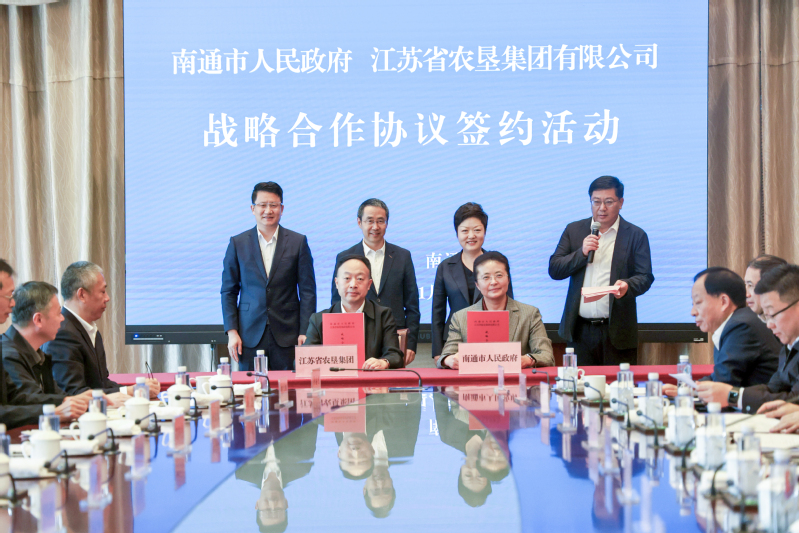 11月5日,集團公司與南通市人民政府戰(zhàn)略合作協(xié)議簽約活動在南通舉行,標(biāo)志著墾地合作邁入寬領(lǐng)域、深層次的新階段。集團公司黨委書記、董事長吳本輝,南通市委副書記、市長張彤見證簽約并致辭。集團公司領(lǐng)導(dǎo)劉耀武、鄧國新,南通市領(lǐng)導(dǎo)保德林、劉洪、李玲參加簽約活動。吳本輝在致辭中回顧了江蘇農(nóng)墾與南通市深厚的歷史淵源。他指出,近年來江蘇農(nóng)墾深化落實“建設(shè)現(xiàn)代農(nóng)業(yè)大基地、大企業(yè)、大產(chǎn)業(yè)”,持續(xù)推進三大工程,打造“一核引領(lǐng)、雙擎驅(qū)動”的現(xiàn)代農(nóng)業(yè)航母,積極謀劃“十五五”戰(zhàn)略規(guī)劃,聚焦大種業(yè)、大農(nóng)業(yè)、大食品,做強核心主業(yè),提升醫(yī)藥健康、城鄉(xiāng)綜合服務(wù)等優(yōu)勢產(chǎn)業(yè),同時布局生物技術(shù)等戰(zhàn)新產(chǎn)業(yè)。他表示,南通是全國聞名的“魚米之鄉(xiāng)”,雙方有著良好的合作基礎(chǔ),未來將持續(xù)聚焦農(nóng)業(yè)科技創(chuàng)新、食品精深加工、農(nóng)產(chǎn)品供應(yīng)鏈運營、食品園區(qū)項目建設(shè)、生物技術(shù)戰(zhàn)投等領(lǐng)域開展合作,希望圍繞本次合作任務(wù)清單,精心組織,形成合力,打造出可復(fù)制、可推廣、具有全省乃至全國示范引領(lǐng)效應(yīng)的墾地融合發(fā)展南通樣板,為譜寫鄉(xiāng)村全面振興新篇章貢獻堅實力量。張彤感謝省農(nóng)墾集團長期以來給予南通發(fā)展的大力支持。她表示,作為江蘇農(nóng)墾的重要生產(chǎn)基地,南通積極促進一二三