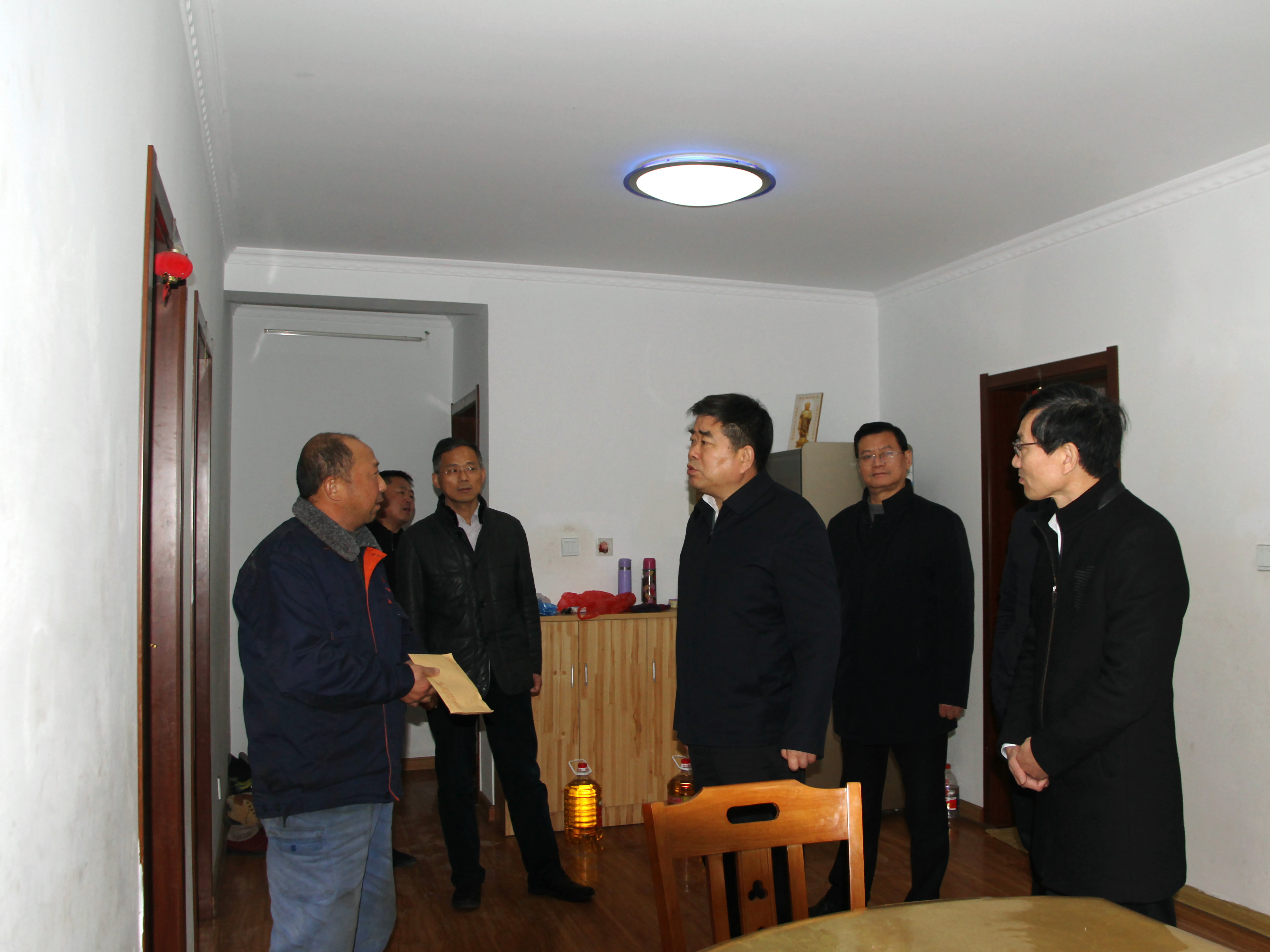 1月10日 下午,集團公司黨委書記、董事長魏紅軍到三河走訪慰問部分困難職工,雖然陰霾的天空不時飄著小雨,但受慰問的困難職工家中卻是暖意融融?! ≡谏鐓^居民李軍家,魏紅軍握著李軍的手