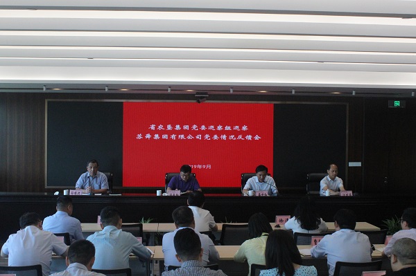 根據(jù)集團(tuán)黨委巡察工作領(lǐng)導(dǎo)小組的安排,9月23日,集團(tuán)黨委巡察組向蘇舜黨委反饋巡察情況。孫繼洲同志主持會議并作表態(tài)發(fā)言。  根據(jù)集團(tuán)黨委統(tǒng)一部署,2019年6月10日至6月23日,集團(tuán)黨委巡察組對蘇