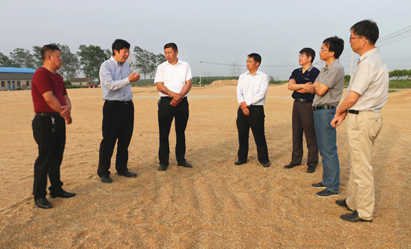 炎炎夏日,風吹麥浪,遍地金黃。6月4日,集團公司總經(jīng)理、蘇墾農(nóng)發(fā)股份公司董事長胡兆輝,到南通檢查指導“三夏”工作。蘇墾南通公司黨委班子成員陪同并匯報工作?! 『纵x一行先后