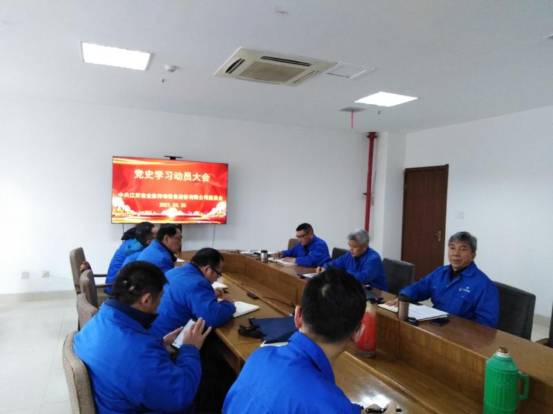 320上午,江蘇省金象傳動設備股份有限公司召開黨史學習教育動員會。公司中層以上管理人員及支部書記、黨小組長等參加了會議。
