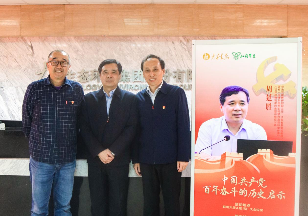 2021年4月22日下午,江蘇省農墾投資管理有限公司黨支部和大千生態環境集團股份有限公司黨支部聯合組織黨史學習活動,特別邀請了中共江蘇省委黨校黨史黨建教研部副主任周延勝教授為黨員們作《中國共產黨百年奮斗的歷史啟示》主題講座。