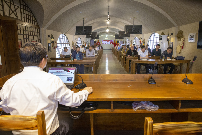 5月13日上午,蘇墾南通公司37名中層黨員干部圍坐在“窯洞”里,認真聆聽了公司黨委書記、董事長、農發南通分公司總經理嚴忠講授警示教育專題黨課。