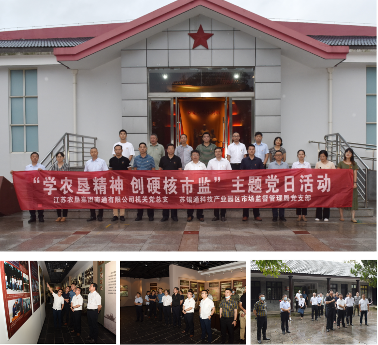 10月8日下午,南通公司機關黨總支與蘇錫通科技產業園區市場監督管理局黨支部等一行近30人赴農建四師暨淮海農場歷史陳列館,開展“學農墾精神 創硬核市監”黨建共建實境教育活動,南通公司黨委書記、董事長嚴忠和蘇錫通園區黨工委副書記、管委會副主任徐金龍分別帶隊參加了當天的主題黨日活動。淮海農場公司黨委書記、董事長、總經理單祥忠及相關部門人員陪同。