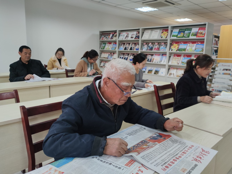 各基層黨支部即日起迅速以各種形式,掀起對六中全會精神進(jìn)行學(xué)習(xí)討論和深化吸收。淮海農(nóng)場社區(qū)充分發(fā)揮新時代文明實(shí)踐所的學(xué)習(xí)平臺地位,經(jīng)常更新并充實(shí)職工書屋的書報藏書量,引導(dǎo)職工居民緊跟時代脈搏充電學(xué)習(xí)。圖為11月12日下午,幾名職工居民第一時間在書屋內(nèi)認(rèn)真觀看刊有黨的十九屆六中全會精神的報紙。