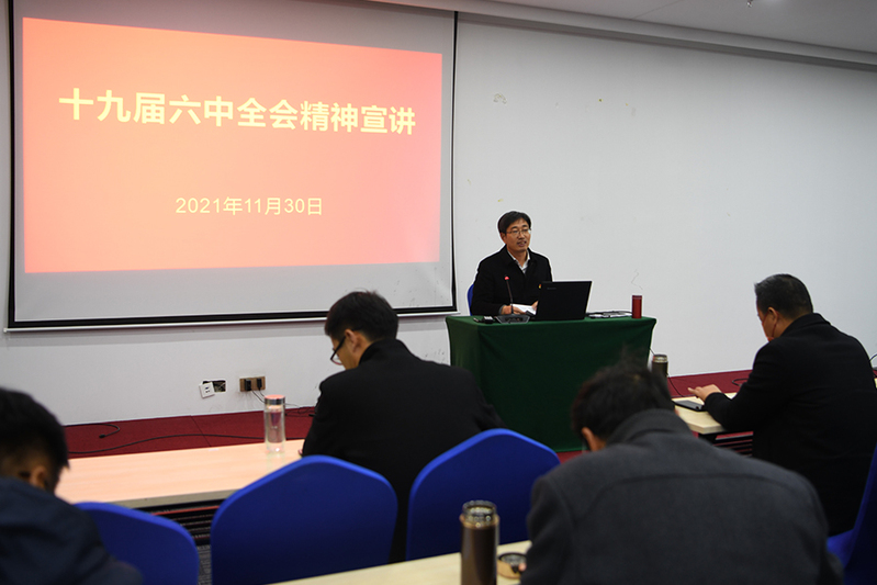 朱明亮從黨的十九屆六中全會的基本情況、深刻認識總結黨的百年奮斗重大成就和歷史經驗的重大意義等方面,對全會精神進行了深入剖析和解讀,幫助大家全面領會黨的十九屆六中全會思想精髓。