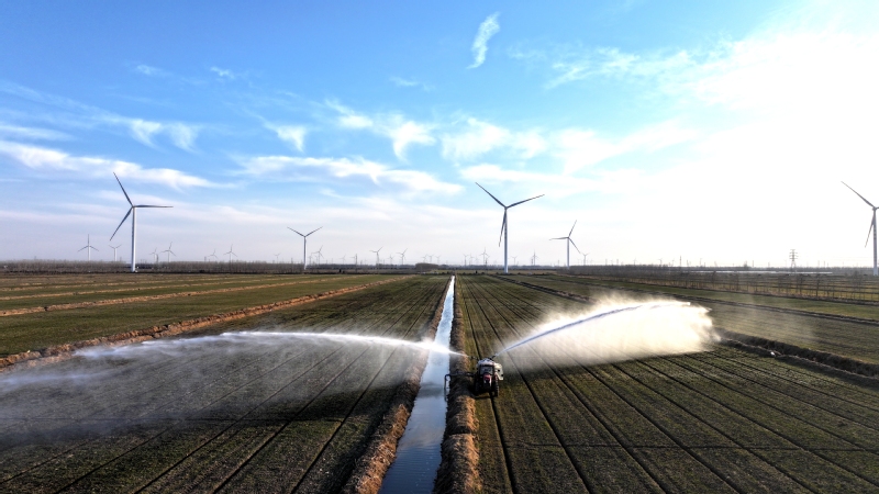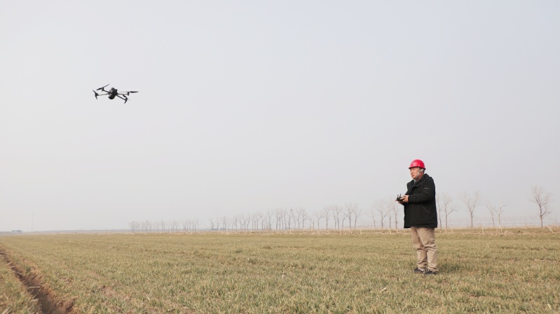 春季是雜草生長的高峰期,同時也是小麥施肥的關鍵節點。及時開展化學除草并合理施肥,能夠有效抑制雜草危害,為小麥生長補充所需養分,促使麥苗茁壯成長。連日來,在三河的 4.2 萬畝麥田里,無人機、植保機在田間往來穿梭,開展化除作業。各生產區依據前期對草情苗情的普查結果,科學挑選除草劑,并嚴格按照配比和操作規程進行噴施,在確保除草效果的同時,防止對小麥造成藥害。與此同時,針對不同地塊的肥力狀況以及小麥生長態勢,制定了精準的施肥方案,以提升肥料利用率。2月27日上午,在潘莊生產區王佳鈺規模體田間,生產區副主任朱廣耀、農業技術員孫文崢一邊在田間查看雜草發生情況,一邊根據苗情苗勢制定化除和施肥方案。田的另一側,無人機空中作業與地面植保機作業的轟鳴聲交織在一起,一幅春管生產繁忙的畫卷呈現在眼前。“由于前段時間長時間干旱無雨,給在田小麥管理帶來了一定影響,這次降雨對小麥生產極為關鍵,我們務必抓住這次降雨的有利時機,完成麥田春季化除和肥料撒施工作,化除工作今天基本結束,就等著下雨撒肥了。” 潘莊生產區副主任朱廣耀說道。為切實做好春季麥田化除和施肥工作,該場農業中心還組織了農業技術服務隊伍,深入田間地頭進行