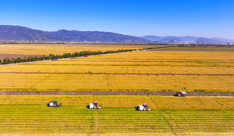 “開鐮了!豐收了!”10月23日上午,多臺收割機駛向蘇墾農發新洋分公司高標準農田,4.5萬畝優質水稻喜開豐收第一鐮。伴隨著隆隆的轟鳴聲,金黃色的水稻被機械收入“囊”中,轉眼間變成金燦燦的稻谷,匯聚成一幅秋日豐收美景圖。收割現場,新洋嚴格收割質量監督,把機械減損作為糧食增產的重點,加大收割質量檢查力度,減少收割損失,確保收割損失率控制在1%以內,收割破碎率在2%以下。“我們密切關注天氣情況和水稻成熟度,立足“前期‘揀’收、中期‘穩’收、后期‘搶’收”的原則,穩步推進收割進度,適時收、曬、烘,為秋播及時騰茬。”農業中心負責人周凌云介紹。今年“三秋”出現了連續陰雨等不利天氣,對機械力量、場頭統籌、糧食調運等應急能力帶來考驗。面對不穩定天氣等因素,蘇墾農發新洋分公司強化機械保障,本部準備大型聯合收割機18臺套,拖拉機300余臺,另調度好61臺小型履帶式收割機,隨時應對突發天氣情況。同時,加強場頭糧食調運管理,備好防雨防霉變應急保障設施設備,確保烘干設備正常運轉和安全,實現秋糧顆粒歸倉。隨著秋收工作的全面展開,耕、耙、旋、播等工作也在同步進行,新洋上下牢固樹立“一盤棋”思想,切實把“三秋”工作作