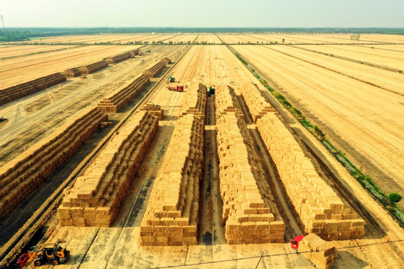 6月9日,蘇墾農發崗埠農場公司一處秸稈集中堆放點,正在對小麥秸稈打捆回收集中存放。崗埠分公司6.4余畝小麥收獲后,實行畝畝秸稈離田,打捆回收后,主要用于生物質發電、牲畜飼料和有機肥生產等,有效提高了秸稈綜合利用率,既保護了生態環境又增加了收入,實現生態保護和經濟效益雙贏。