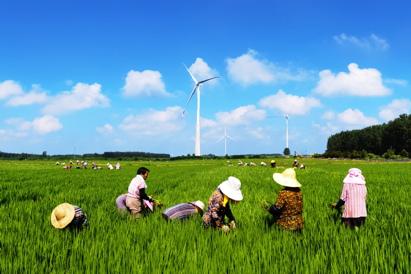 蘇墾農發寶應湖分公司擁有3500畝有機稻生產基地,該基地于2021年取得歐盟、國環雙認證。為保障有機稻質量,每到夏季,公司都會組織進行人工拔“雜草稻”。高溫炙烤下,200多名勞動者揮汗如雨,為生產出“魚米之鄉”高質量有機米貢獻力量。
