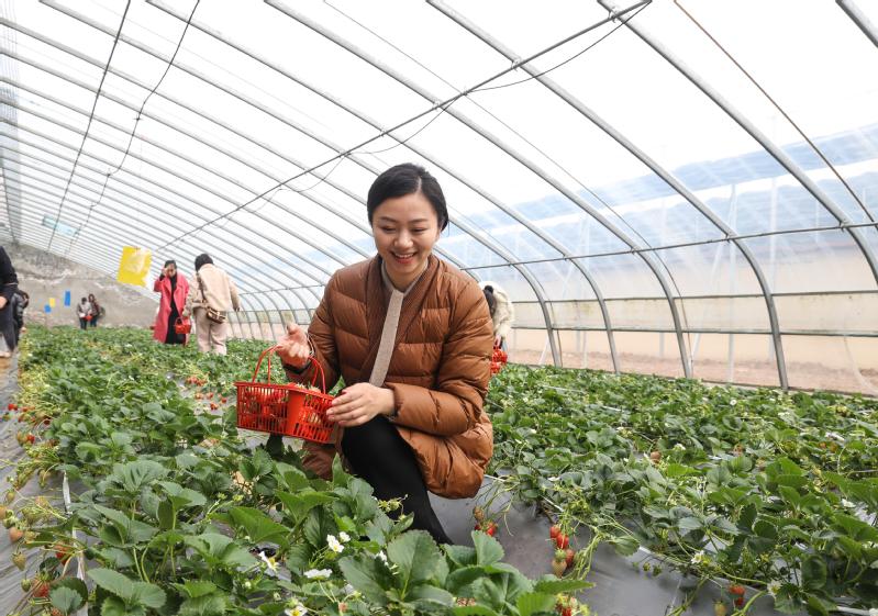 走進云臺農場云水灣濕地公園草莓大棚,沁人心脾的果香撲面而來。不少游客前來采摘,三三兩兩的游客手提小籃子穿梭在地壟間精挑細選,將一顆顆寶石般的草莓“收入囊中”,動手的快樂、品嘗的喜悅、打趣的笑聲溢滿大棚。大家盡情享受著“莓”好時光,體驗和感受采摘的樂趣,品嘗草莓的鮮甜。