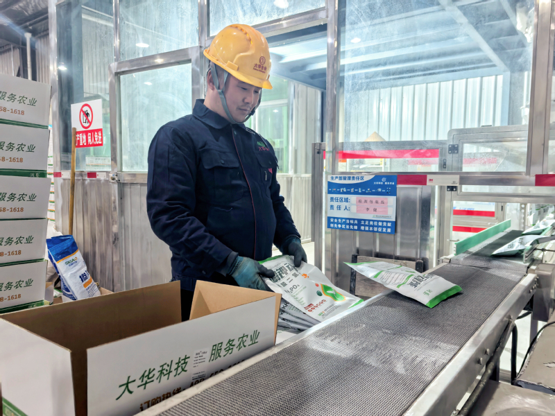 在3月農資銷售旺季,蘇墾農服大華生物生產車間里一派熱火朝天的景象。生產線上,工人們頭戴安全帽,身著工作服,熟練地操作著設備,從原材料的投放、混合攪拌,到成品肥料的包裝、搬運,各個環節緊密銜接。近階段,公司各生產線穩定運行,產品庫存充足,為沖刺一季度“開門紅”提供了有力支撐。