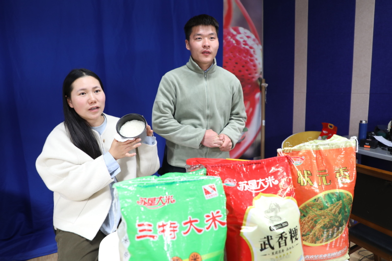 連日來,三河農場直播團隊深入田間地頭采集素材,通過直播詳細介紹農場農產品的特點和優勢,分享農場生態環境、種植技術以及農民們的辛勤勞作,讓消費者在購買產品的同時,深深感受農場的魅力和農業的價值。圖為主播正在向觀眾推介蘇墾大米。